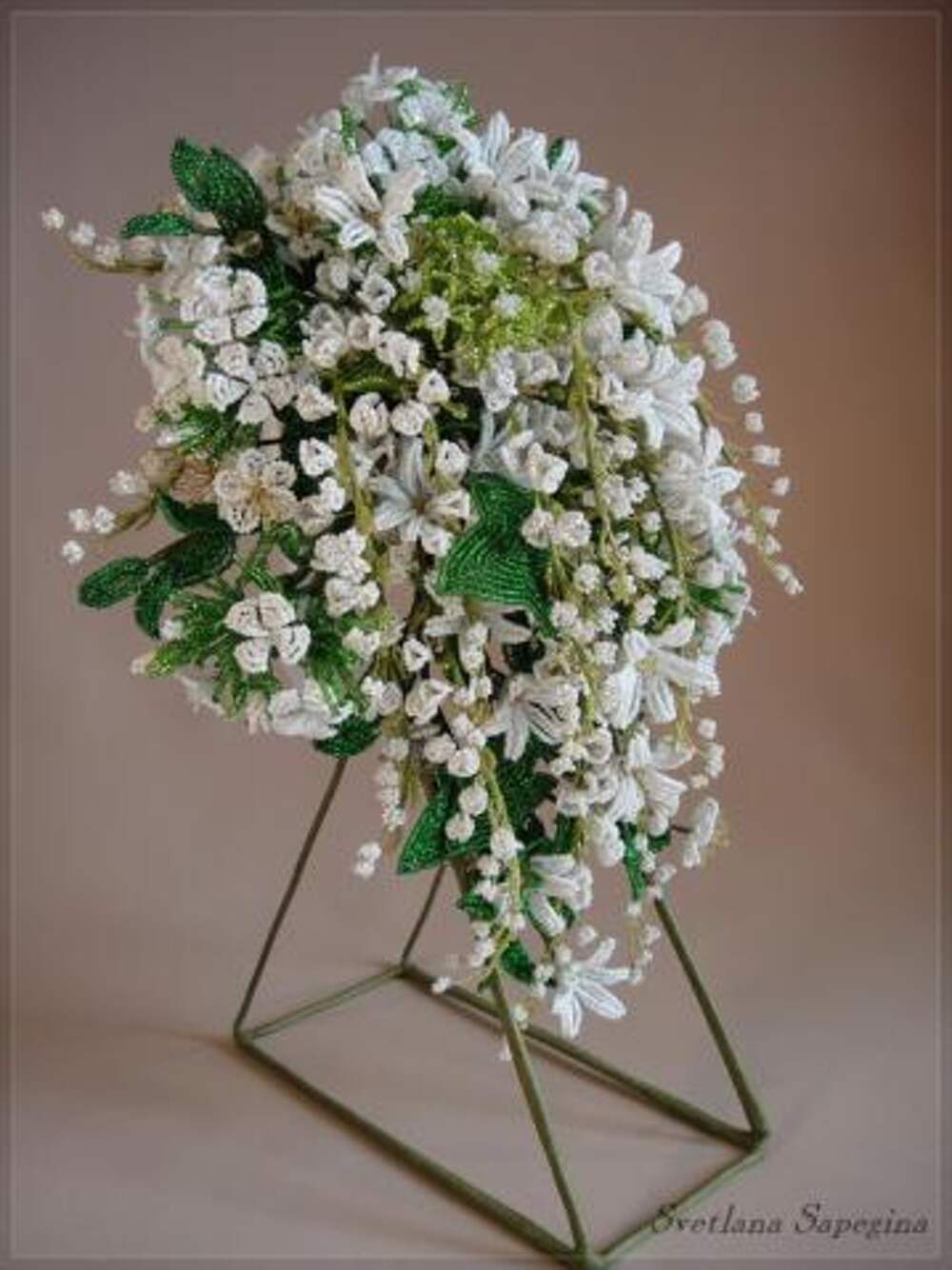 На создание "Королевского свадебного букета" вдохновил белоснежный букет Кейт Миддлтон. Вечный букет из бисера навсегда запечатлел королевскую свадьбу. Букет состоит из ландышей, которые символизируют счастье, турецкой гвоздики -